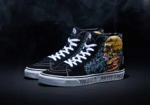 The Vans x Metallica shoes feature artwork designed by Pushead, well know for his work with Metallica and other bands. The kicks will be sold exclusively via Vans Family starting on July 25 at 9 p.m. PST and on Metallica.com on July 26 at 9 a.m. PST.