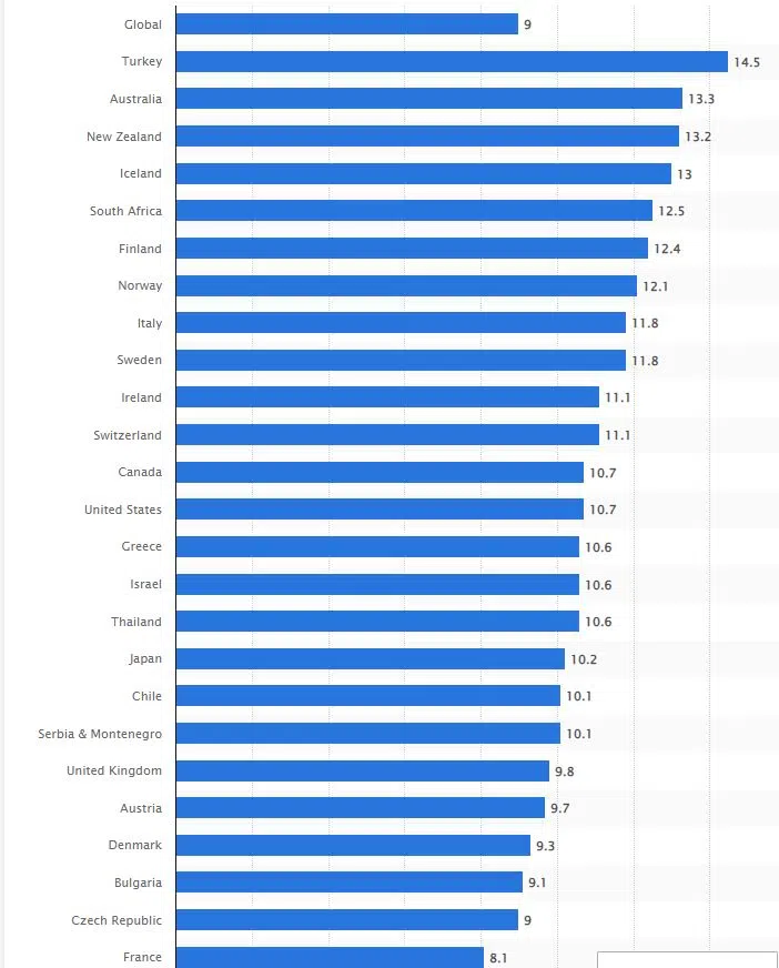 🇹🇷 Turkey – 14.5